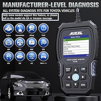 ANCEL TD700 OBD2 Scanner Fits for Toyota Lexus Scion Engine Car Diagnostic Scan Tool All System Code Reader Transmission Fluid Temperature TPMS Relearn ABS Available for Some Models Only