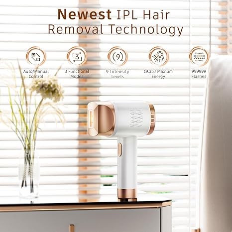 Laser Hair Removal IPL Laser Hair Removal for Women and Men Permanent, 999999 Flashes, At-Home Hair Removal Device for Facial Legs Arms Whole Body Use (White Gold)
