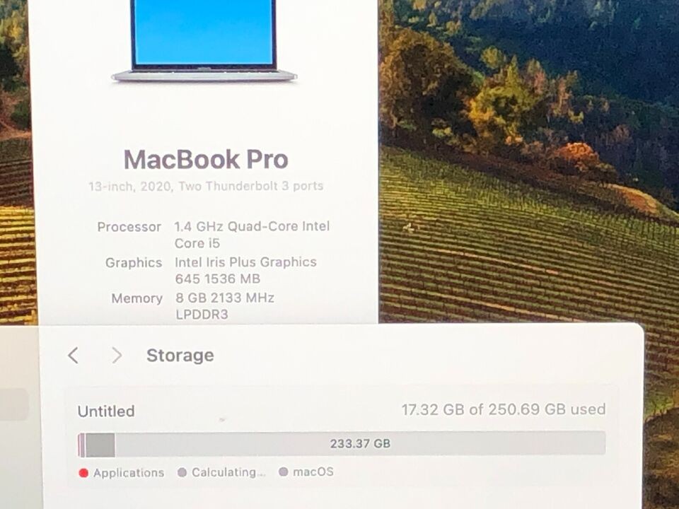 Apple MacBook Pro Touch Bar 2020 13 Laptop 256GB SSD 8GB RAM Gray 76 Cycles