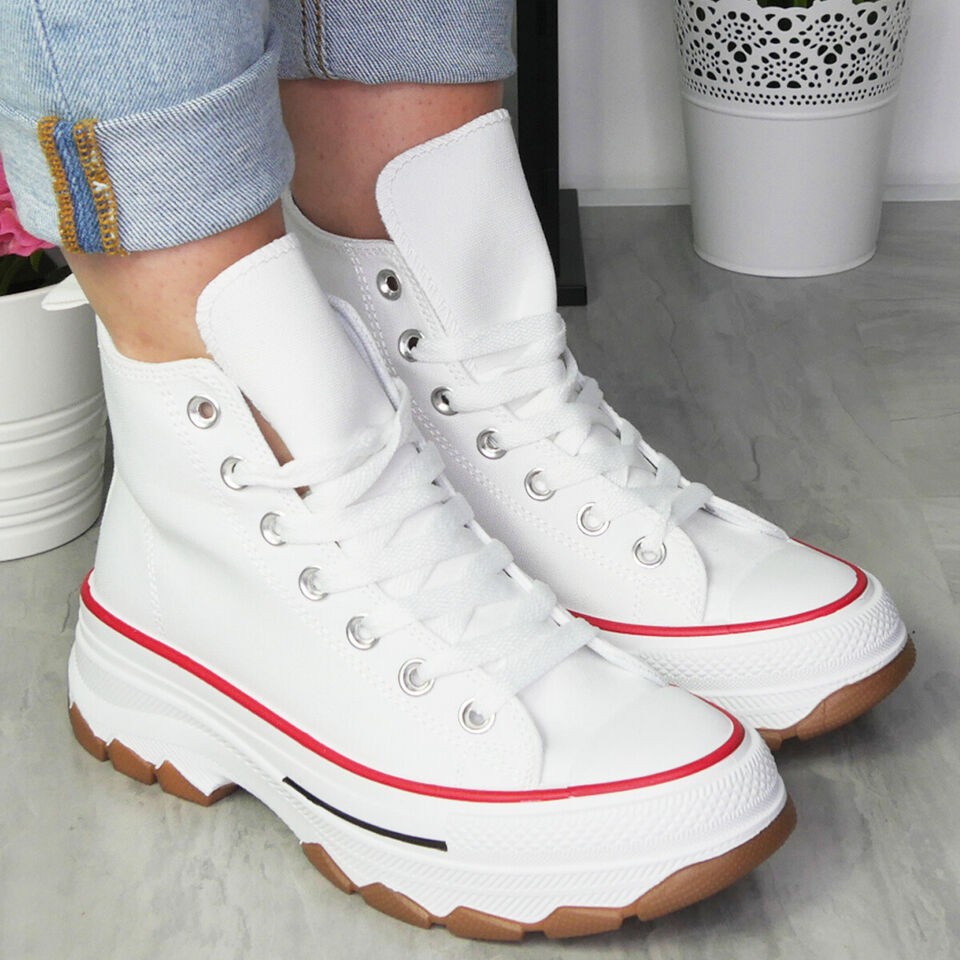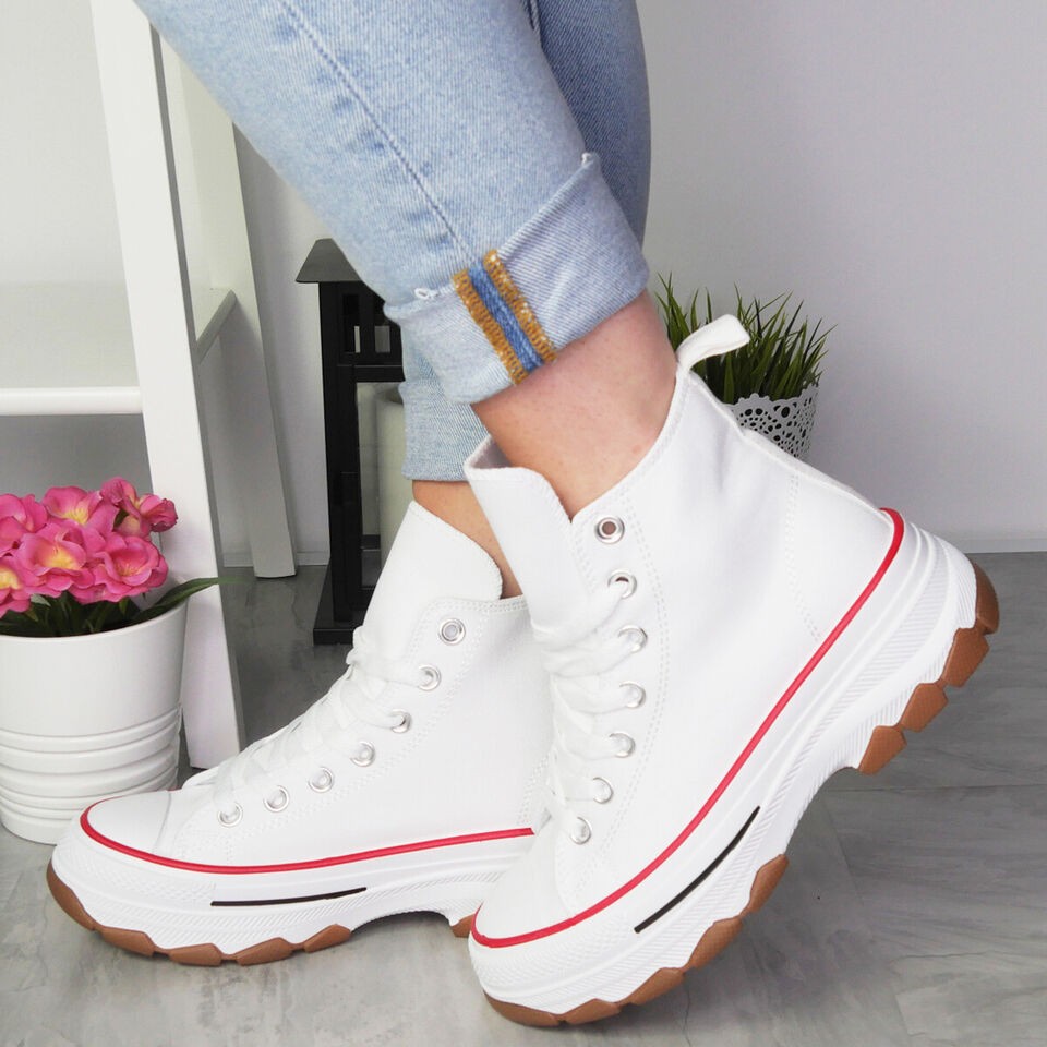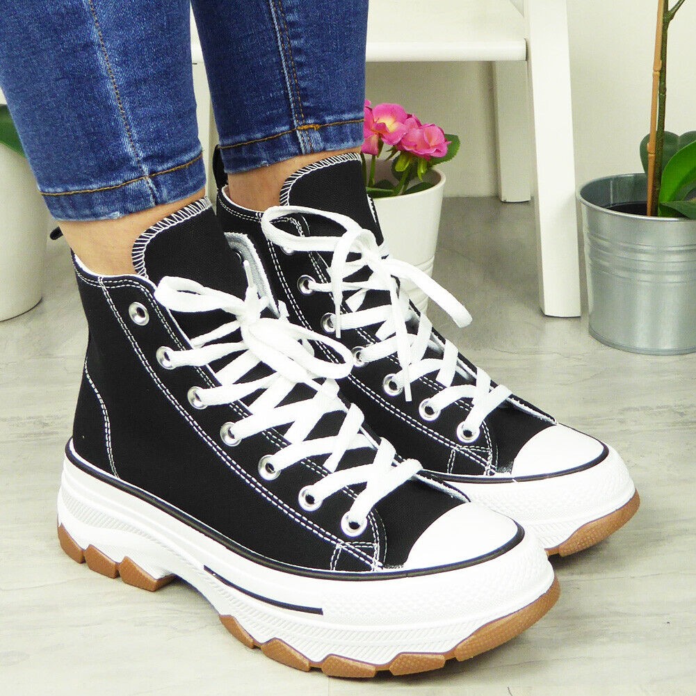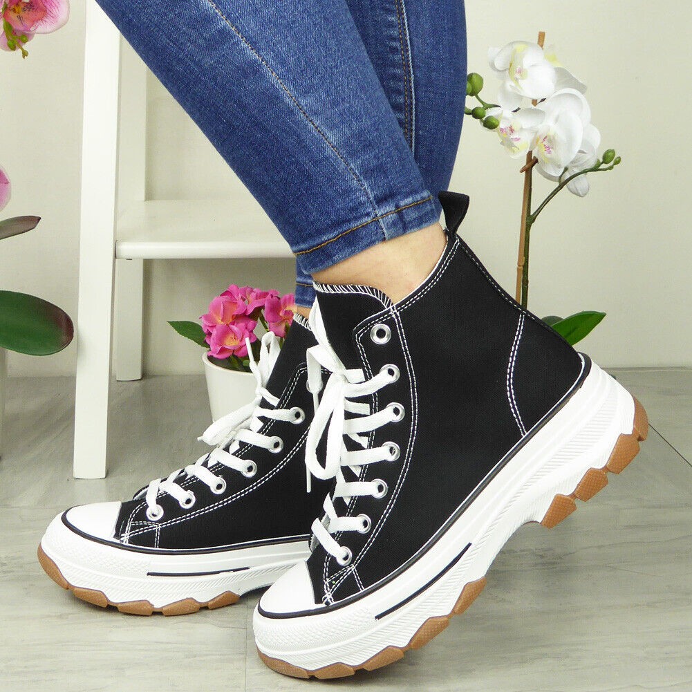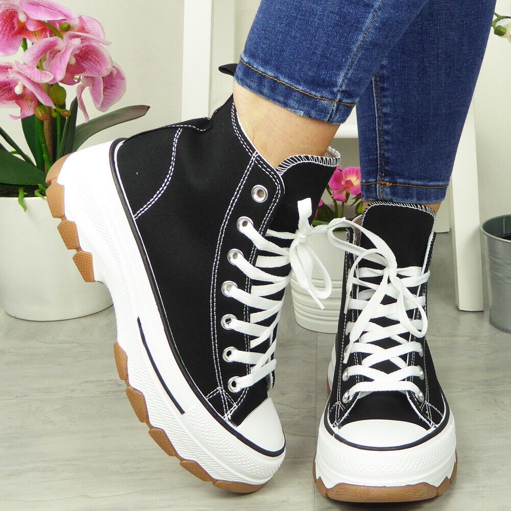 Canvas Womens Trainers Platform Ladies Lace Up Sneakers Comfort Casual Shoes