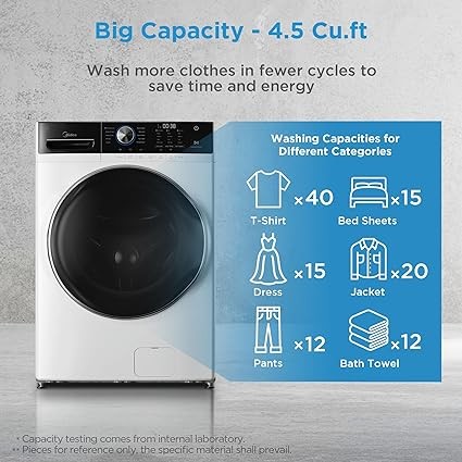 Midea MLH45N1AWW Front Load Washer, Automatic Machine, Vibration Control, Pre-Soak, Speed Wash, 10 Cycles, Energy Star Certified, 4.5 Cu.ft, White
