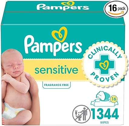 Pampers Sensitive Baby Wipes, Water Based, Hypoallergenic and Unscented, 16 Flip-Top Packs (1344 Wipes Total)