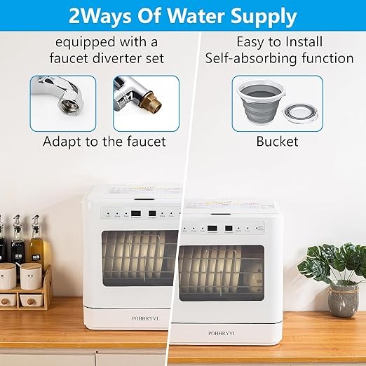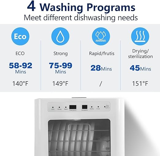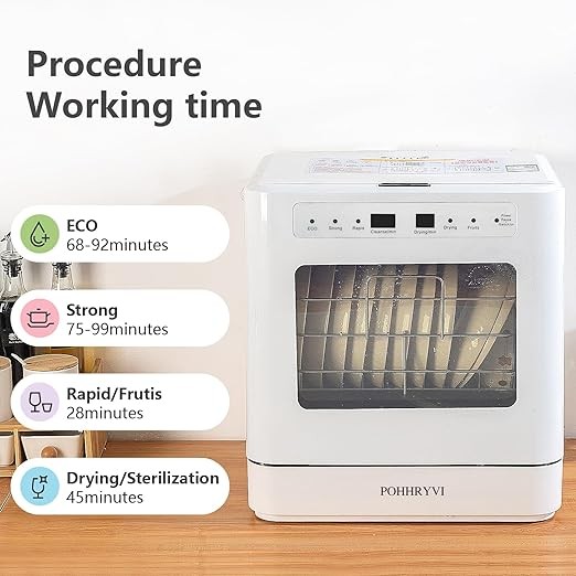POHHRYVI Countertop Dishwasher 4 Wash Programs Hot Drying,Air-Dry Function & Fruit Wash LED Light 110V Portable Dishwasher for Small Apartments, Dorms