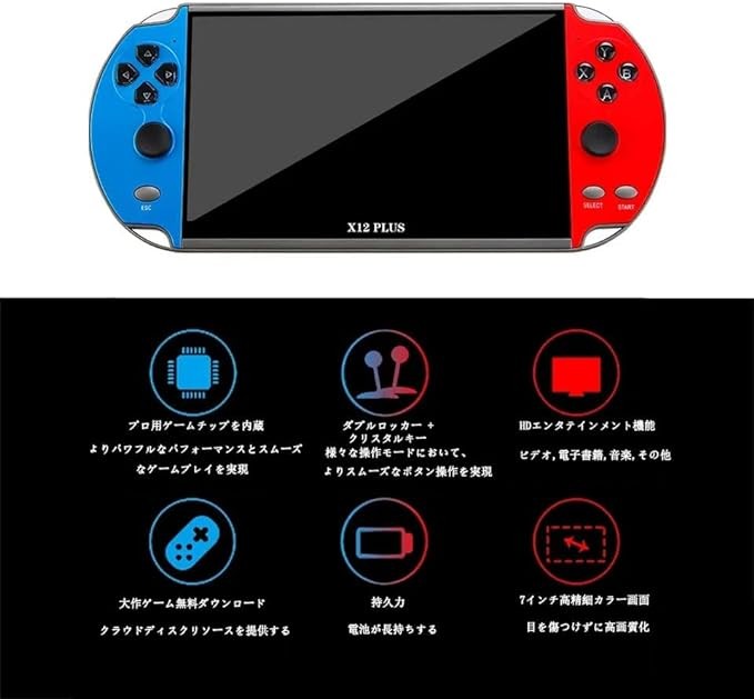 TLCRETE X12plus ポータブルゲーム機7インチ画面減圧携帯型ゲーム機MP4 MP5プレーヤー 16gb メモリ 内蔵10000種類ゲームPSPゲーム機