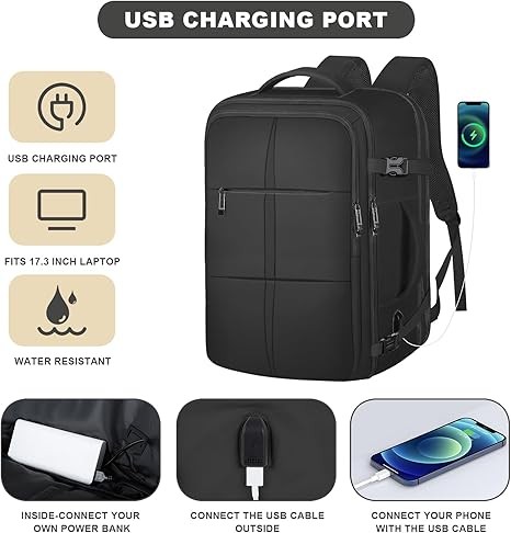 Travel Backpack, Extra Large Backpack, Carry On Backpack, 40L Expandable Flight Approved Big Bag Waterproof Business Luggage Suitcase Rucksack Casual Daypack Fits 17 Inch Laptop, Travel Gifts for Men