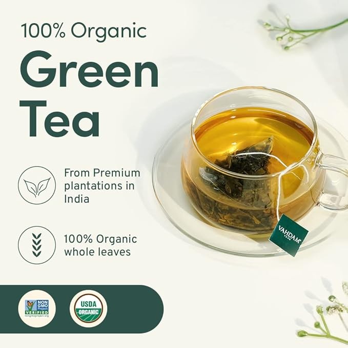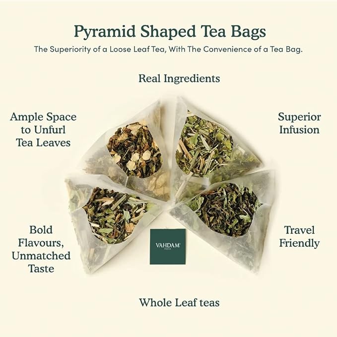 VAHDAM, Original Himalayan Green Tea (100 Count) High Grown, Non GMO, Gluten Free, Med Caffeine | Earthy, Smooth & Refreshing | Resealable & Individually Wrapped | Plant-Based Pyramid Tea Bags